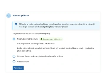 Volba začátku platnosti – Při prodlužování řidičského průkazu si můžete zvolit začátek platnosti.