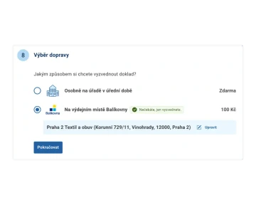 Doručení – Na úřad zdarma, nebo za 100 Kč do tisíců výdejních míst po celé ČR.