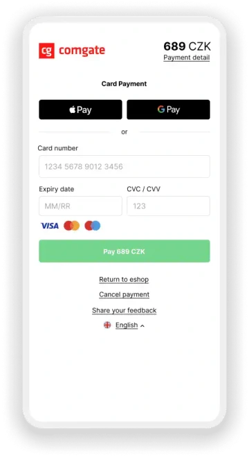 In all cases, the merchant will receive the requested payment amount less a fee at the rate set for regulated payment cards. In the case of the Profi tariff, this is 0.62% + 0.7 CZK. Regardless of the type of card used by the customer, the merchant will always receive CZK 993.1 for a payment of 1,000 CZK. This provides a predictable return for the merchant. The remainder of the cost is borne by the payer in the form of a surcharge.