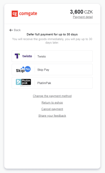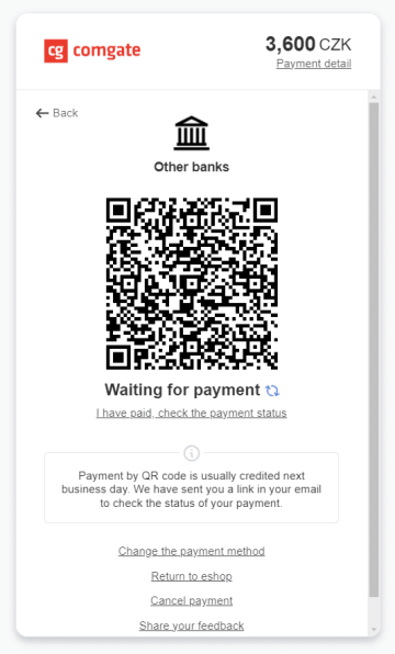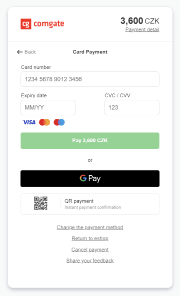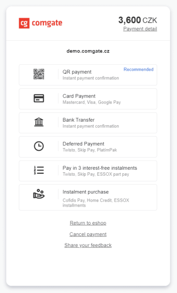 You can try our online payments without completing the payment. The payment amount is set to 1 CZK. Money from completed payments is donated to charity.